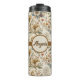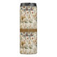Flores marfil y naranjas pálidas, con acentos verde azulados claros y tostados, en un fondo beige, crean un delicioso tumbler térmico boho.