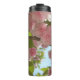 Aquí está la tercera de una serie de fotos de dos cerezos en floración. Esta foto muestra cúmulos de flores esponjosas, rosas y un cielo azul brillante en el fondo. Visita nuestra tienda para ver más fotos de hermosos árboles primaverales. Esta imagen también se presenta como fondo de pantalla panorámica en MLeWallpapers.com.