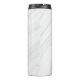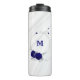 Hermosas flores azul real y hojas grises plateadas en tumbler térmico de mármol