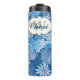 Un golpeteo hermoso de la flor hecho en sombras del azul. Usted puede personalizar sus iniciales con sus los propios y cambiar la fuente, el color, y las letras.