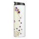 Taza térmica botánica de flores moradas y blancas regias con hojas doradas