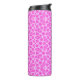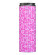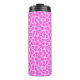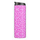 El diseño geométrico es alegre, con flores de bonito fucsia sobre un fondo rosa pálido.