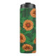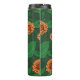 Termo flores de la zinnia naranja, hojas verdes sobre ve