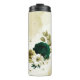 Hermosas flores de oro y blanco marfil verde esmeralda con hojas doradas taza térmica
