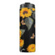 Termo Flores de sol y mariposas: fondo negro acuarela