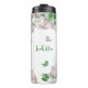 flores moradas soñadoras románticas y hojas verdes con hermosas mariposas tumbler térmico botánico