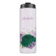Hermoso tumbler térmico romántico con flores verdes esmeralda y púrpura y algunas hojas. PARA VER MÁS PRODUCTOS COINCIDENTES, haga clic en la colección anterior o contácteme