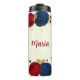 Termo flores rojas y azules marino hojas doradas