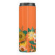 El diseño presenta nuestros hermosos florales de flores silvestres amarillas en un follaje amarillo brillante, rosa rubor y verde. El jardín florido y florido de la flora silvestre y las mariposas rodean el fondo del tumbler naranja de mandarina para crear un floreciente jardín floral, personalizado por su nombre. Todos los ilustraciones son obras de arte originales hechas a mano por Moodthology.