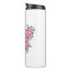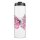 Flower arrangement of pink butterfly with pink Japanese cherry blossoms on white background.