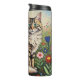 Termo Fluffy Gray Tabby Cat and Folk Art Flowers