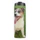 El pantano fotografiado después de perseguir su pelota es un Fox Terrier marrón y blanco