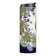 Este tumbler termal presenta una espiral colorida fractal en arena blanca, azul y marrón claro con el nombre de personalizable en el fondo de una fuente caligráfica blanca bonito.