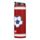 Podemos crear este diseño en cualquier combinación de colores, sólo contacte con nosotros antes de comprarlo a través del enlace preguntar al diseñador. Pequeño diseño de fútbol para niños totalmente personalizable con nombre y número. El diseño presenta un escote de fútbol y fútbol en azul y blanco con rayas blancas deportivas sobre fondo rojo
