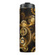 Sin soldadura, metalizado, latón, engranajes dorados sobre un fondo oscuro y oxidado. Estilo Steampunk.