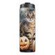 Termo Gato Bengal de Halloween con calabazas aterradoras