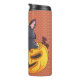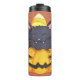 Un gato de Halloween sonriente lindo en una calabaza con un fondo de naranja salpicado, y murciélagos. Gracias al Hungryjpeg y a la Fabrica Creativa por algunos de los elementos del diseño.