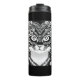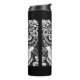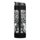 Tumbler en la imagen de un lindo gato, usando una elegante máscara de Mardi Gras en negro, blanco y gris claro.