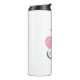 Un tumbler térmico con un adorable ilustracion gráfico. Un gato blanco gatito con una linda imagen impresa en su piel. Dormir pacíficamente. Un gran corazón rosado detrás de ella y algunas pequeñas estrellas también.