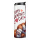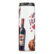 Esta imagen El día de San Valentín humorística muestra a un gato naranja muy gruñón vestido con orejas de conejo rosa esponjoso y una corbata de arco de polka-punto rojo. El gato está situado junto a una copa de vino y una botella de vino con un rosa en la etiqueta. El texto "Feliz Día de San Valentín" y corazones flotantes completan la escena, creando una divertida e irónica toma de la festividad.