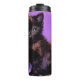 Tumbler termal con un gato al estilo Van Gogh con fondo morado. ¡Este gatito negro mira al espectador adorablemente! ¡Un gran regalo para los amantes del gato y para los coleccionistas holandeses de arte!