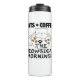 Gatos + Café = Buenos días meowgicos. Los elementos esenciales para empezar el día. Esta imagen presenta un diseño lúdico con un gato enclavado en una taza de café. El texto de arriba dice "Gatos + Café" y debajo dice "Las mañanas mecánicas". El gato está dibujado en un estilo sencillo y personalizado, con los ojos cerrados y una expresión relajada, como si disfrutaran de una mañana acogedora. La taza de café está llena de granos de café, lo que le da un toque relajante y agradable a la hora de empezar el día. Las huellas de la pata esparcidas alrededor del texto le dan un toque bonito y caprichoso, enfatizando aún más la conexión entre los gatos y el café. En general, la imagen es una representación alegre y encantadora de la rutina matutina perfecta de un amante del gato.