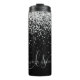 Purpurina Glam Black Silver Elegante Tumbler Termal Monograma. Personalice fácilmente este diseño de tumbler térmico de moda de moda con un elegante purpurina brillante de plata sobre un fondo negro. El diseño incluye su monograma manuscrito con giros de bonito y nombre.