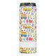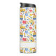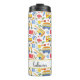 Divertido nombre personalizado Thermal Tumbler con acuarela amarillo bus escolar en patrón. Nombre personalizado del Tumbler Termal perfecto y alegre para estudiantes o profesores que vuelven a la escuela.