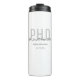 Un tumbler de graduación de doctorado que presenta el nombre del graduado, campo de estudio y fecha de graduación. La taza incluye el nombre en un tipo de letra de escritura a mano y un diseño en negro y gris. Es grandioso como un gran favor o un favor partidario. Simplemente agrega la información del graduado, agrega este tumbler a tu carrito, y felicitaciones por este importante hito! Graduado Keepsake Color Gris Negro Grado PhD Termal Tumbler Diseño Vacacional | ©Melissa Patton - Diseñador