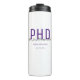 Un tumbler de graduación de doctorado que presenta el nombre del graduado, campo de estudio y fecha de graduación. La taza incluye el nombre en un tipo de letra manuscrita y un diseño morado y negro. Es grandioso como un gran favor o un favor partidario. Simplemente agrega la información del graduado, agrega este tumbler a tu carrito, y felicitaciones por este importante hito! Graduado Keepsake Purple Name Degree PhD Thermal Tumbler Holiday Design | ©Melissa Patton - Diseñador