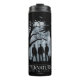 Echa un vistazo a este gráfico supernatural que presenta a Castiel, Dean y Sam Winchester de pie silueta por el bosque.
