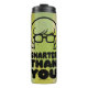 Echa un vistazo a este contorno simplificado del icónico cabello, gafas y pecas de Velma. Las palabras "más inteligentes que tú" están escritas debajo de su icono.