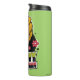 Sonrisas escandalosas en este gráfico de estilo retro, rodeado de íconos florales, con la cita "Como el hombre groovy" escrita a continuación.