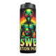 Un ilustracion dinámico y vibrante presenta a dos alienígenas de piel verde, uno grande y otro pequeño, que se oponen a un naranja audaz y a una puesta de sol de rayas amarillas. Varios platillos voladores con vigas brillantes descienden desde arriba. El prominente texto "ROSWELL NATION PARK" sugiere un tema lúdico y extraterrestre para este diseño gráfico.