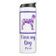 Gran patrón abstracto digital de la silueta de perro mascota dane morado, rosa, amarillo y azul. Este tumbler térmico seguramente pondrá una sonrisa en cualquier cara de los amantes del perro. Además, es ecológica, así que puede conservarla por años. Cambie ‘Amo a mi perro’/ ‘Nombre’ por cualquier texto que le guste a ambos lados de la botella.