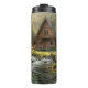 A serene coffee mug that says, "Grandpa's Favorite Mug" but the text can be personalized to any name or family member. The illustration is an a-frame log cabin out in the mountains and woods with a deer next to a rippling stream.