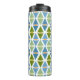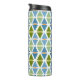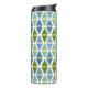 Esta botella térmica tiene un diseño moderno de triángulos de mediados de siglo cuyos fondos han sido curvados, puestos en pares con un óvalo entre ellos. Si te gusta el diseño pero prefieres colores diferentes, envíame un mensaje.
