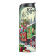 This delightful artwork showcases a vibrant green and red Christmas train, richly adorned with wreaths, bows, and colorful gifts, steaming through a snow-laden forest. Under a majestic glowing full moon and falling snowflakes, the scene evokes pure holiday magic. This enchanting image perfectly captures the traditional spirit and whimsical joy of a memorable Christmas Eve journey, ideal for seasonal decor.