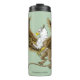 Un grifo de fantasía marrón y blanco está en fuga en un fondo verde salvia