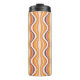 Groovy, retro 70s style patterned Travel Mug featuring optical pattern in shades of orange, pink and ivory. Great for those of you who love retro style and 70s style decor.