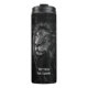 León blanco y negro de Guay con ojos naranjas brillantes sobre un fondo de mármol negro. Personalizar con tu nombre.