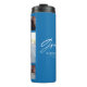 Fotografía de un guión de graduación azul brillante diseño moderno y elegante de una taza térmica.