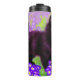 Termal Tumbler con un gatito negro Gustav Klimt! Esta belleza de ojos anchos posa en un campo verde de flores moradas. Un regalo para los amantes del gato y del arte austriaco.