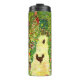 Tumbler termal con el jardín de pintura al óleo de Gustav Klimt con gallos (1917). Dos gallinas marrones se encuentran en un camino al jardín. Hermosas flores rosas, rojas y blancas florecen a lo largo del camino. Un gran regalo para los amantes del arte Art Nouveau y austriaco.