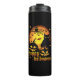 Halloween con calabazas lunares batiendo arañas y gato asustado