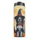 Escena divertida de Halloween con un pequeño y travieso cachorro mirando desde una calabaza tallada, rodeada de vibraciones de otoño espeluznantes y divertidas. Con un encanto descarado y colores otoñales, es el toque de humor perfecto para la temporada.