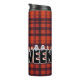 Stylish travel tumbler featuring ghost candle Halloween lettering on a bold red plaid background. Perfect for keeping your drinks hot or cold during Halloween festivities or everyday use.