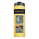 Collage fotográfico familiar, nombre monograma, tumbler térmico con patrón de fondo dorado. Puede personalizarlo y agregar sus propias fotos más hermosas y añadir su nombre.