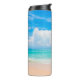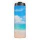 Termo Hermosa playa tropical con cielo azul y c blanco