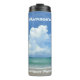 Este tumbler termal presenta una nube de tormenta que se está gestando en el horizonte sobre un mar tropical azul. Este tumbler termal costero lo tiene todo, cielo azul, nubes blancas, océano acuático y playa de arena mientras el surf se rompe a lo largo de la costa. Personalice esta propiedad personal frente a la playa con su nombre para un hermoso regalo de oceanview. Esta imagen es la fotografía original de la playa de JLW_PHOTOGRAPHY